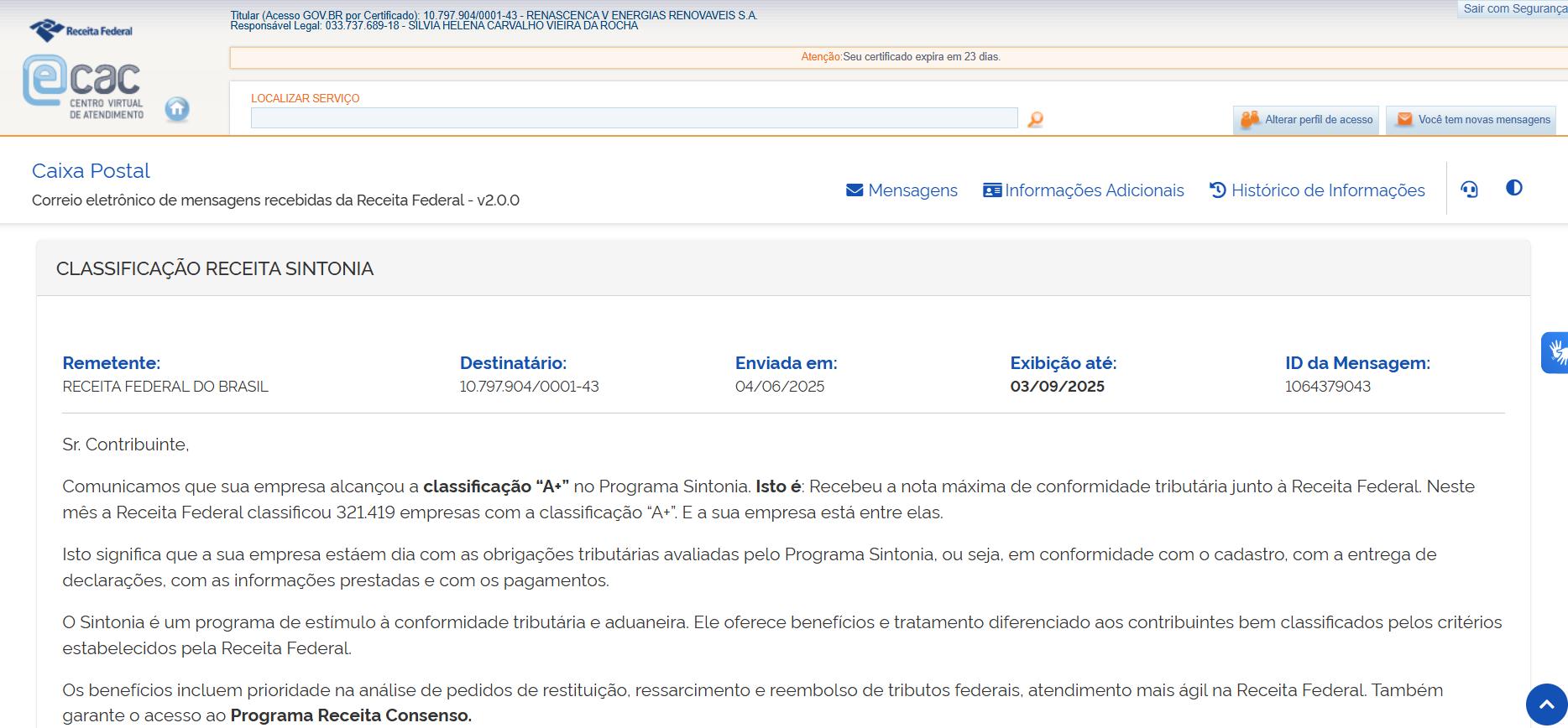 巴西公司下屬項(xiàng)目公司獲得巴西稅務(wù)最高評(píng)級(jí)A+